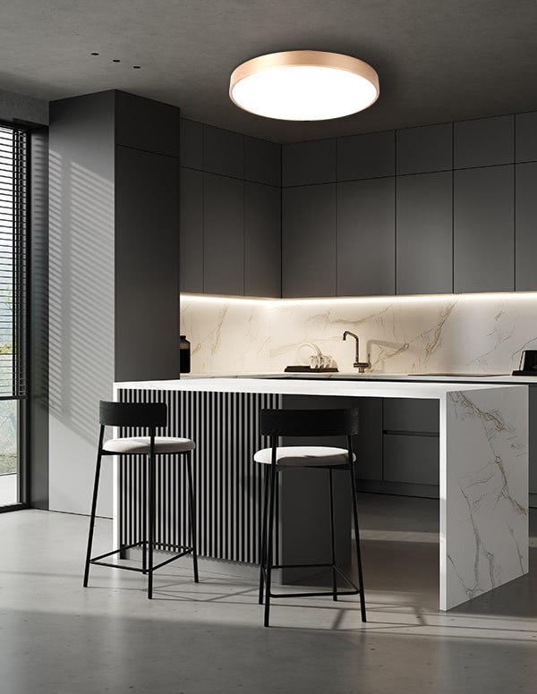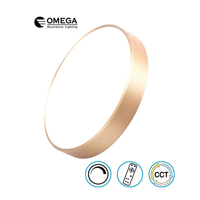 גוף תאורה צמוד תקרה VEGAS. קוטר 60 ס"מ.גובה הגוף 60 מ”מ ומגיע במגוון גדלים, הספקים וצבעים. כולל שלט עם פונקציית CCT לבחירת גוון אור רצוי מ- 3000K ועד 6500K, כולל דימר באמצעות השלט לקביעת עוצמת האור הרצויה OMEGA