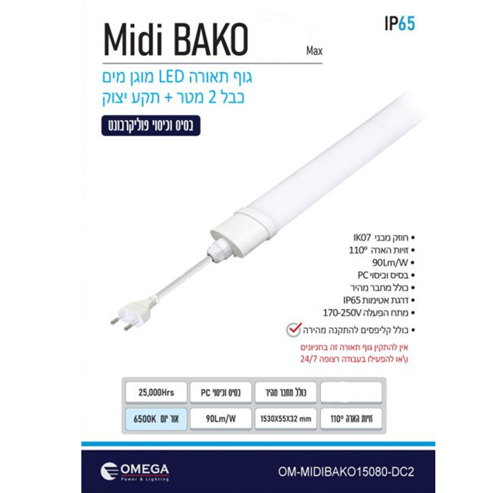 גוף תאורה מוגן מים 36W+כבל ותקע OMEGA