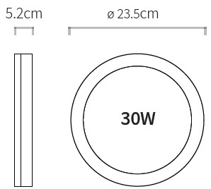 גוף תאורה איכותי עגול מוגן מים וכניסת חרקים 30W IP65 מבית LIPER גרמניה, מותאם לשימוש בחדרי אמבטיה, קירות חוץ וקירות פנים.