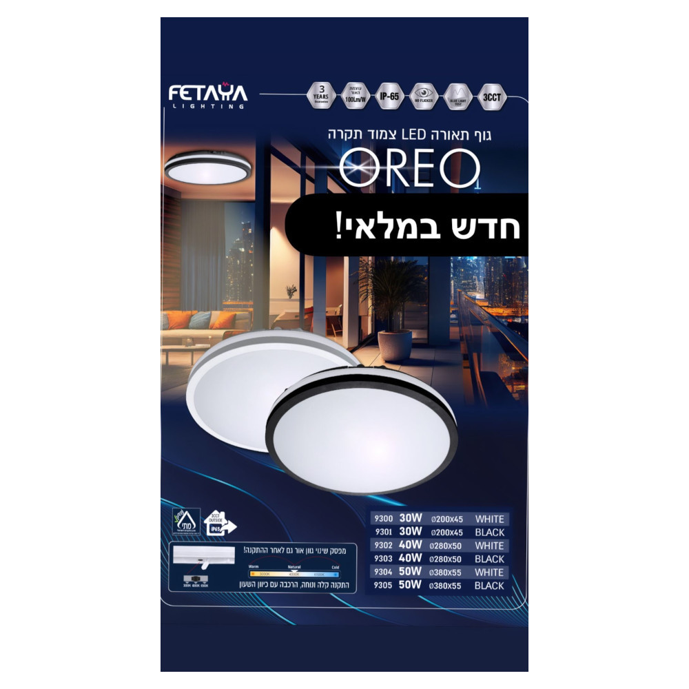 גוף תאורה מוגן מים IP65 מחוזק בהספק 40W בעל מתג מובנה חיצונית! לבחירת גוון התאורה לבן/צהוב/טבעי גם לאחר ההתקנה!