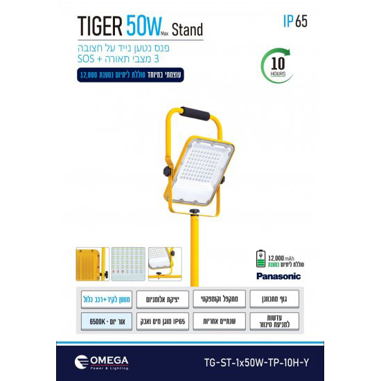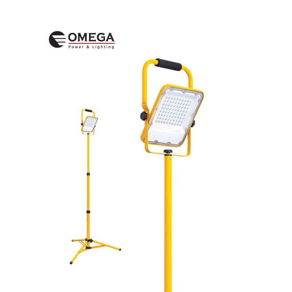 פנס הצפה נייד נטען 50W + חצובה + מטען קיר + מטען רכב עם 4 מצבי תאורה! OMEGA