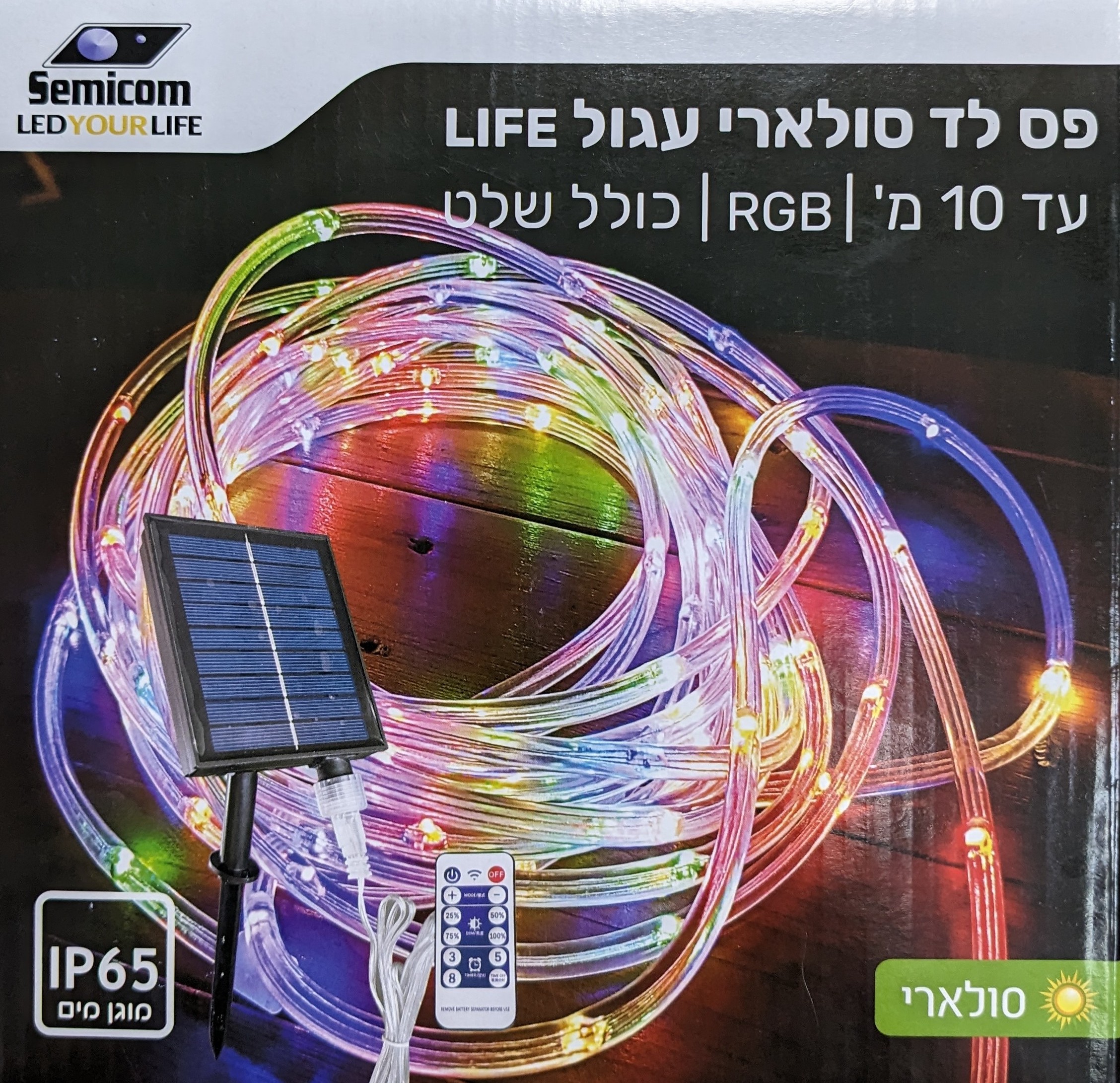 RGB מוגן מים IP65 כולל שלט ובחירת גוון התאורה.ניתן גם לחיבור ישיר לחשמל.