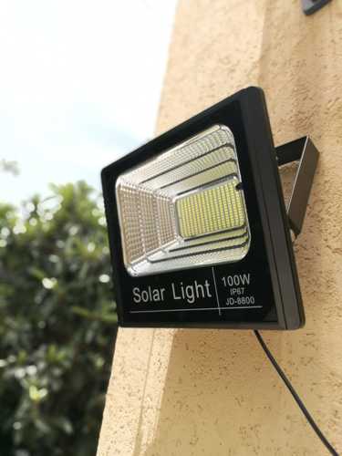פרוז'קטור סולארי 100W נטען ומוגן מים.נדלק אוטומטית בחושך ובעל צג חיווי סוללה.כולל שלט רחוק השולט על הדלקה/כיבוי,עוצמת התאורה וטיימר לכיבוי מתוזמן.