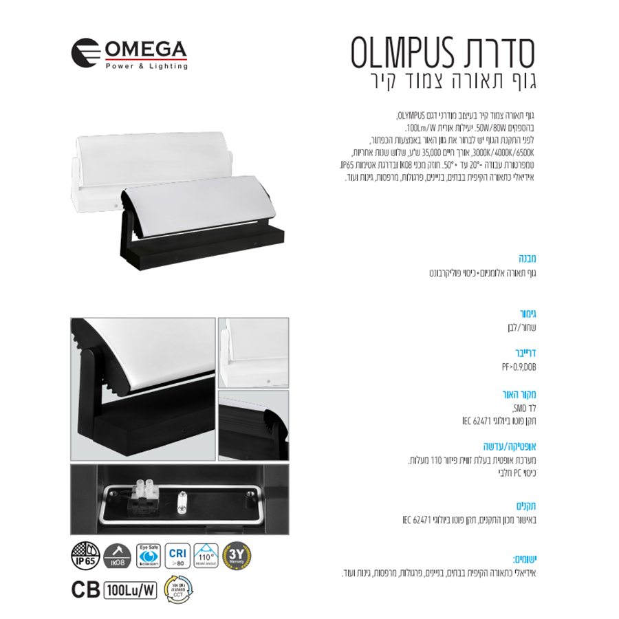 צמוד קיר מעוצב "אולימפוס" 50W שחור