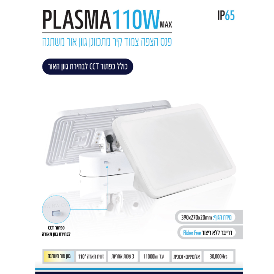 גוף תאורה מעוצב צמוד קיר מוגן מים בעיצוב מודרני,מבנה אלומיניום+זכוכית,מתכוונן למעלה-למטה,פיזור אור אחיד,אידיאלי לתאורה היקפית בבניינים,בתים,פרגולות,חצרות,מרפסות ועוד.זמין בצבעים שחור ולבן והספקים של 70W ו 110W. כולל כפתור CCT לבחירת גוון התאורה.